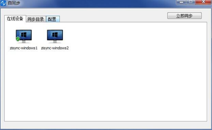 輸入您的同步口令(我們在此輸入同步口令 zisync),點擊完成,發現另外一臺同步口令為zisync的設備(zisync-window2),其中 zisync-window1為當前設備,如圖: