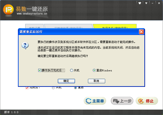 接下來,易數(shù)一鍵還原軟件會提示您,需要重新啟動電腦,如下圖所示: