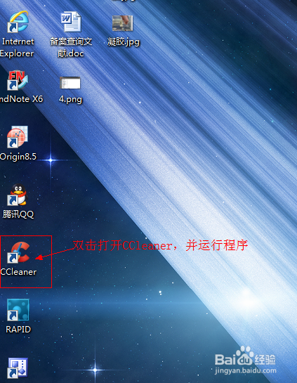 在桌面雙擊“CCleaner”快捷方式圖標,如圖——