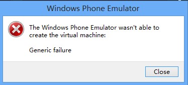 使用Windows Phone模擬器運行,提示“The Windows Phone Emulator wasn't able to create the virtual machine. Generic failure”。