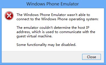 如果禁用了其中的 vEthernet(Internal Ethernet Port Windows Phone Emulator Internal),就會導致運行模擬器時提示“The emulator couldn't determin the host IP address, which is used to communicate with the guest virtual machine”。因此,該連接對于運行模擬器來說是必須的。