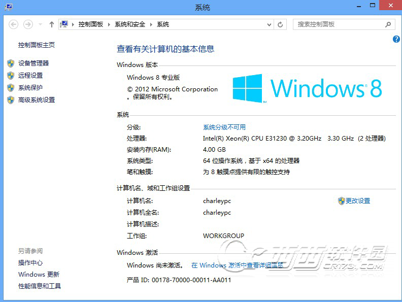 1.“計算機”右鍵“屬性”查看自己電腦安裝的Windows 8系統的版本,以及電腦內存是不是4G或4G以上。