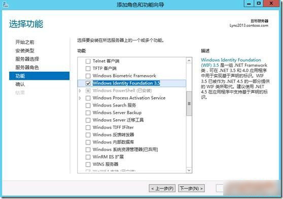 安裝Microsoft .Net Framework 3.5(需要sever2012安裝鏡像并指定文件位置)、Windows Desktop Experience、Message Queuing、Windows Identity Foundation、
