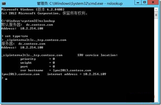 完成后,測試創建的記錄是否正確。在任意一臺服務器或域內客戶端上運行命令提示符,設置正確后結果如下: