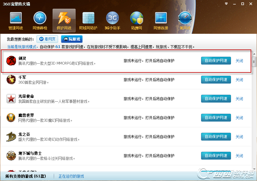 就以劍靈為列,現在已經打開了游戲加速保護。在進游戲中會自動加入360游戲優化里。