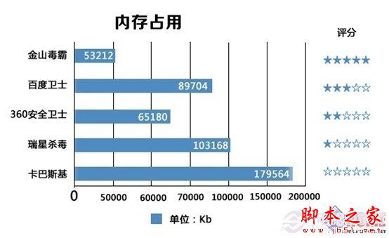 安裝XP系統的老機器大部分硬件配置都不會高,內存占用就成了一個影響非常大的因素,此項參數對比金山毒霸強勢奪冠,而卡巴斯基再次墊底。