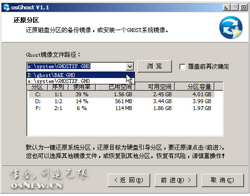 下面西西給您演示osGhost怎么進行系統還原:(前提,你系統上有gho備份文件,自己備份的,或者新的gho文件)