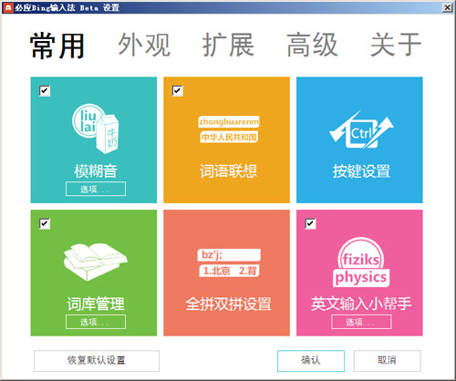 擴展下載,目前擴展有限,只有一個應用字符和應用編輯器下載;多媒體輸入,這個在某種程度上是Bing拼音輸入法借助Bing搜索引擎的優勢,但是Bing在國內的市場份額少得可憐,個人蠻喜歡這個功能;自動升級功能,是輸入法都應該支持;其他一些筆者未挖掘的功能。