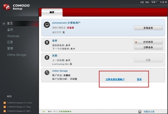 二、注冊Comodo Backup賬號并激活在線存儲空間