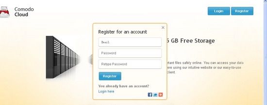 點擊鏈接到Comodo cloud的頁面進行注冊,只需要添加郵箱及密碼即可,如圖(8)所示:
