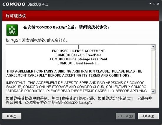 Comodo Backup支持十多種安裝語言,包括簡體中文,選擇進行安裝,如圖(1)所示: