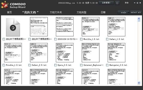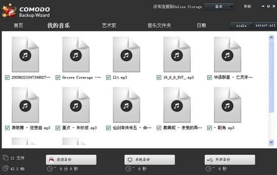 COMODO BackUp Wizard能夠自動掃描磁盤中的圖片、音樂、視頻和文檔信息,以縮略圖的方式顯示,并進行快速備份;如圖(11)所示: