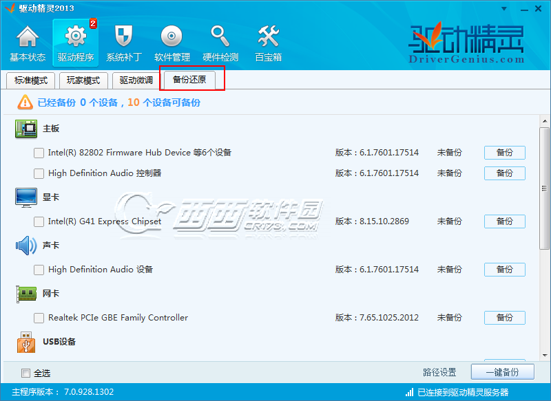 3、選擇好驅動備份的默認路徑后再回到主界面點擊驅動程序選擇備份還原。