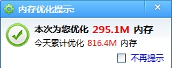 自動優化的整個過程不需要人工操作,更不影響電腦正常操作,只需要后臺運行加速人生軟件便可,可以說此功能更加的人性化。PS:如勾選不再提示按鈕,優化結束便不會有任何的提示。