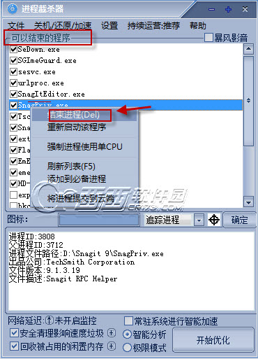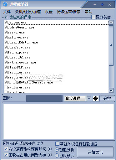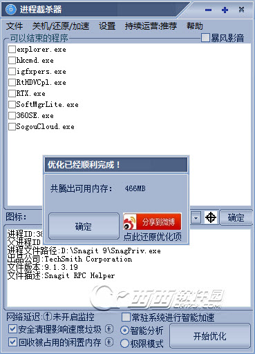 注意:優(yōu)化時(shí),選中的軟件進(jìn)程會(huì)被關(guān)閉!
