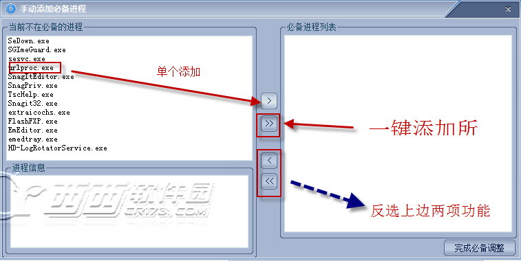 你可以選擇把需要的單個(gè)軟件編輯到必備進(jìn)程,也可以全部添加。