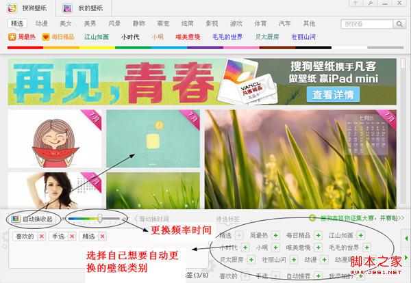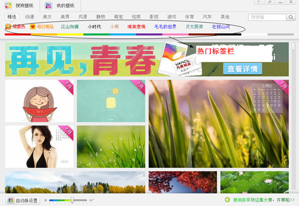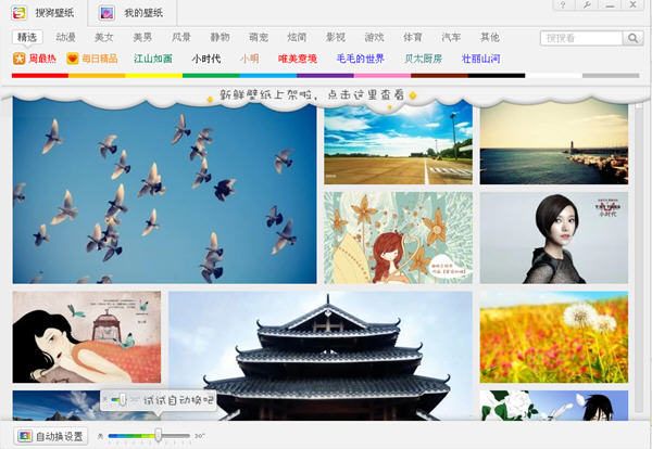 搜狗壁紙還有自動換的功能哦,就是程序左下角!自動換設置