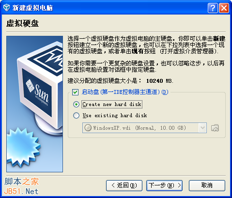 創建虛擬機 首先運行VirtualBox,然后單擊左上角的“新建” 這時候來到了“新建虛擬電腦向導”,直接單擊“下一步” 這一步我們要為虛擬機命名,同時選擇要安裝的系統。正確選擇要安裝的系統可以讓VirtualBox幫助你配置合適的硬件環境 這里選擇為虛擬機分配內存的數量。如果你的內存小于512MB的話就保持默認配置,如果在512MB與1G之間可以設置為256MB,如果是1G以上的話可以設置384MB或者更多。 接著開始創建硬盤,選擇“Create new hard disk”以后按“下一步” 這時我們來到了“新建虛擬硬盤向導”,直接單擊“下一步”
