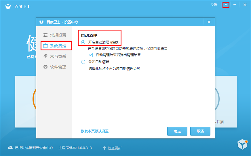 自動清理功能會智能判斷您的系統資源的使用狀態,在空閑時幫您清理電腦垃圾,清理完成后會告訴您結果。 開啟自動清理功能后,您的電腦不會再持續累積垃圾,時刻保持暢快運行。