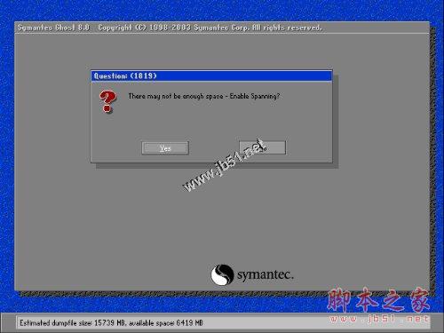 圖十 空間不夠的提示(是否將鏡像文件存儲(chǔ)在多個(gè)分區(qū)上)