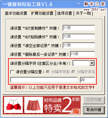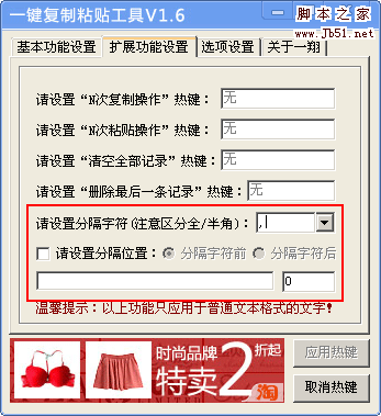 在分隔字符下方有兩個狀態顯示框,分別用來顯示最后一次復制或分隔的文本內容和當前緩沖區內的記錄總數。