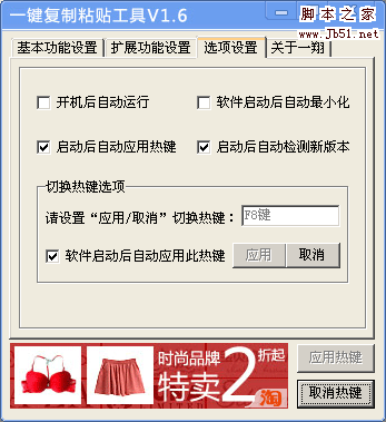 3、啟動后自動應用熱鍵:程序啟動后,自動應用上次程序退出時保存的熱鍵功能。