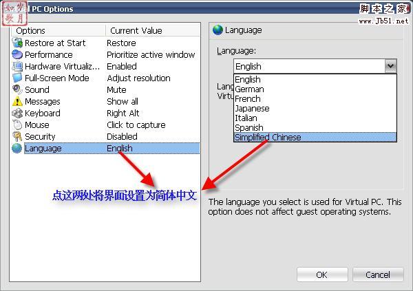 答:Virtual PC 2007是英文版。需要安裝簡體中文語言包,才能成為“中文版”。安裝簡體中文語言包后,在菜單欄,選取File(文件)-Options(選 項)-Language(語言)-Simplified Chinese(簡體中文),即可成為中文界面了。我在提供Virtual PC 2007下載的同時,提供了簡體中文語言包的下載。
