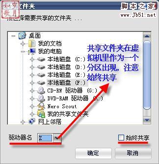 特別提示:為避免虛擬系統中存在的病毒,可能對實際系統造成的交叉感染,建議如無必要以關閉“始終共享”為好。必要時,可以臨時共享一次也就行了。