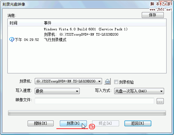 ⑤點擊“刻錄”按鈕。。。等待直到刻錄結束。