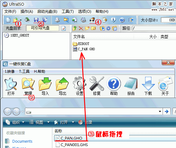③添加(拖拽)C_PAN.GHO到一鍵GHOST.ISO里(如果是DVD光盤,C_PAN001.GHS也一起添加進去吧)