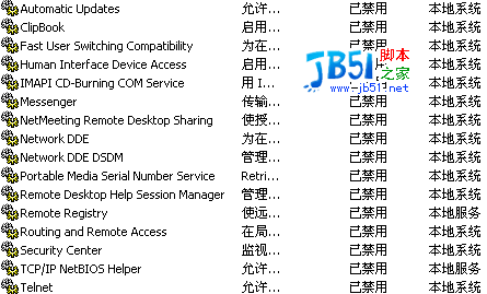單擊“開始”→“設置”→“控制面板”。雙擊“管理工具”→“服務”,打開后將看到服務列表,有些服務已經啟動,有些則沒有。右鍵單擊要配置的服務,然后單擊“屬性”。在“常規”選項卡上選擇“自動”、“手動”或“禁用”,其中“自動”表示每次系統啟動時,WindowsXP都自動啟動該服務;“手動”表示WindowsXP不會自動啟動該服務,而是在你需要該服務時手動啟動該服務;而“禁用”則表示不允許啟動該服務。在實際配置時,選擇“手動”或者“禁用”都可以實現關閉該服務的目的,推薦使用手動功能,這樣你隨時可以啟動一些臨時需要的服務。有些服務是WindowsXP所必需的,不能關閉,否則將會造成系統崩潰。至于各項服務的功能,我們可以通過雙擊該服務或將鼠標懸停在該服務名上查看。具體服務的說明淺顯,大家看得懂,可以自己選擇那些要那些不要。修改的方法是:選中禁用的服務,點右鍵,選"屬性">"停止",將"啟動類型"設置為"手動"或"已禁用"。