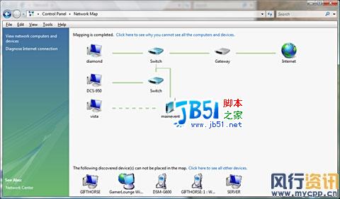 在網絡中心窗口名稱為View Full Map的鏈接顯示在用戶網絡上的計算機和設備的圖像。網絡地圖(見圖片5)使用LLTD技術來標記網絡布局。