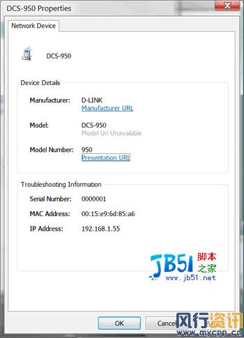 圖片2:UPnp/LLTD D-Link DCS-950 網絡相機設備的詳細信息展示在性能窗口中。