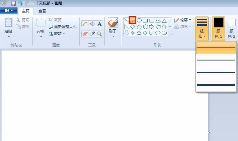 2、在形狀中選擇曲線形,線條粗細根據需要設置即可。