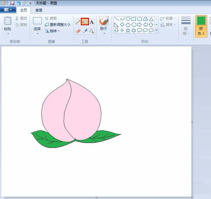 7、選擇油漆桶工具,給畫好的桃子填充上顏色。