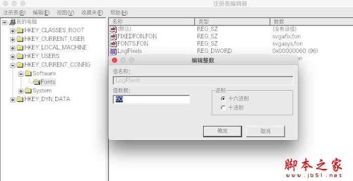 雙擊LogPixels鍵,將Base從十六進制更改為十進制,然后將值設置為96。