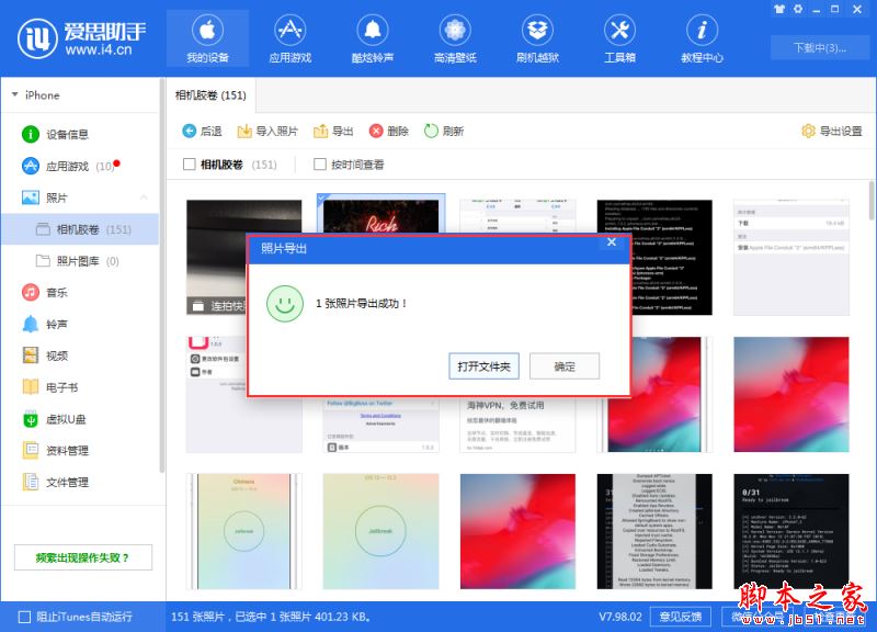 以上便是武林網小編為大家分享的關于利用愛思助手將蘋果手機中照片導出到到電腦的具體操作流程,希望能夠幫到你,武林網持續發布更多資訊,歡迎大家的關注。