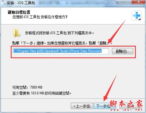 5、選擇軟件安裝位置,點(diǎn)擊下一步
