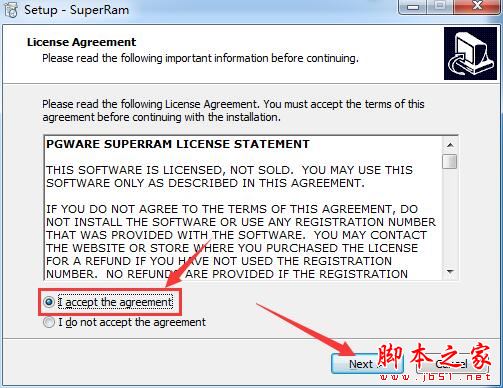 2、選擇"I accept the agreement"點擊next