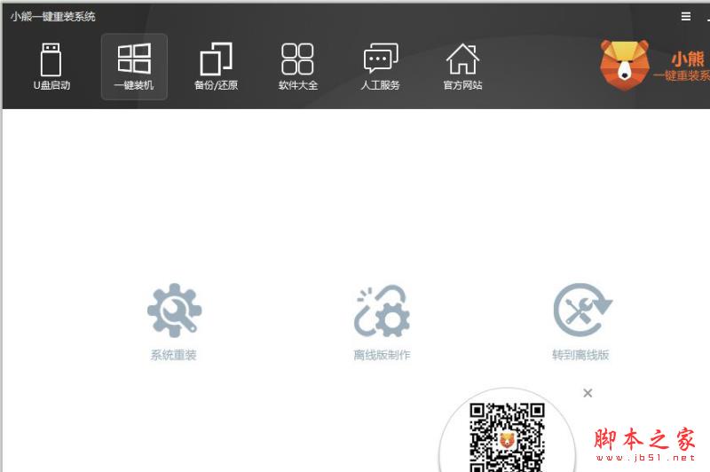 小熊一鍵重裝系統(tǒng)是一款集U盤啟動(dòng)、一鍵裝機(jī)、一鍵備份/還原的裝機(jī)輔助工具。其體積小巧,實(shí)用,設(shè)計(jì)人性化,輕輕一鍵,即可輕松重裝win7、win8、win10。同時(shí)它也是一款u盤啟動(dòng)盤制作工具,為電腦無(wú)法啟動(dòng),黑屏,藍(lán)屏等問(wèn)題提供安全、穩(wěn)定、簡(jiǎn)捷的u盤裝系統(tǒng),徹底解決沒(méi)有光驅(qū)帶來(lái)的煩惱。