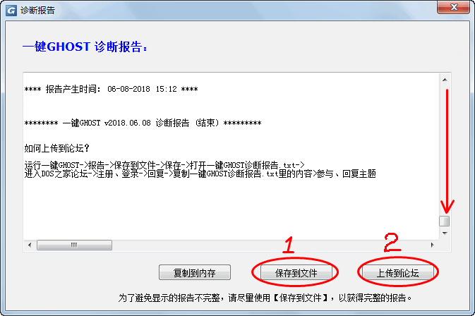回復時,請復制“一鍵GHOST診斷報告.txt”里的全部內容后粘貼,以供大家幫助你分析原因和解決問題,也有利于軟件的日后改進。
