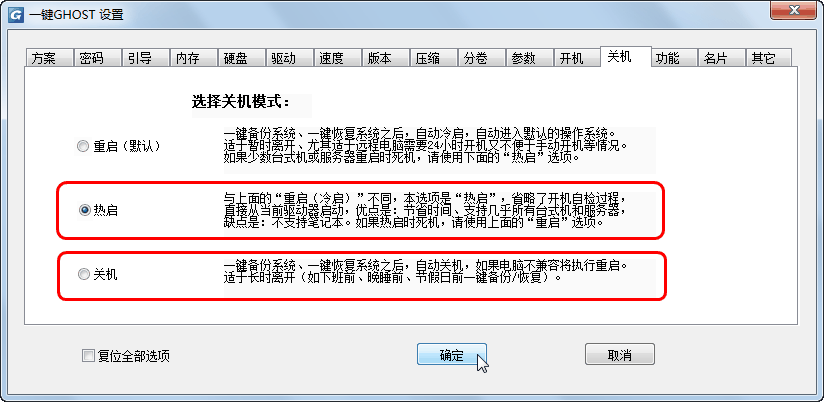 * 設置關機模式(2017版,增設"熱啟"選項,以解決少數電腦"重啟"時死機問題)