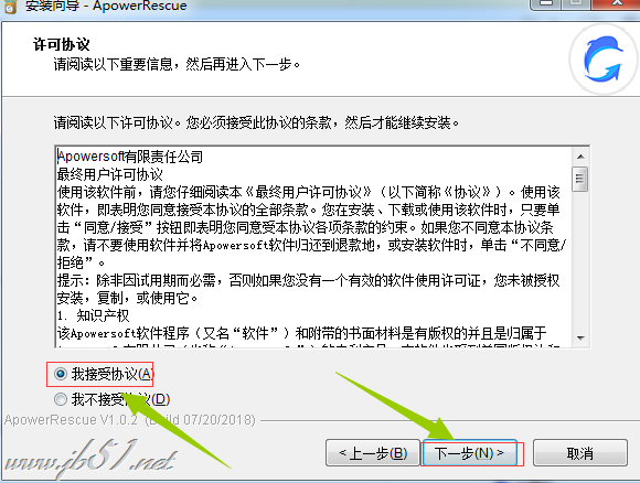 4、閱讀并同意軟件使用協議,點擊“下一步”