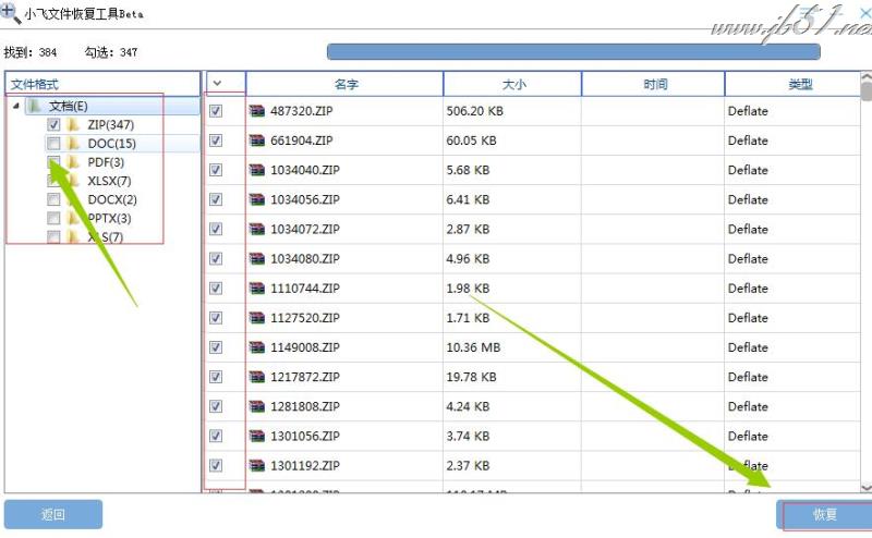 2、選擇想要會問的文檔格式,點擊“恢復”