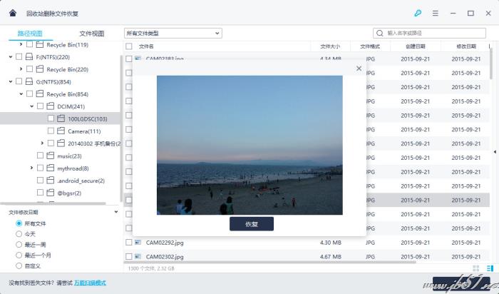 掃描結(jié)束后,會(huì)有成堆的文件擺在你眼前。當(dāng)然,不會(huì)讓你一份份文件打開、查看、恢復(fù)的,這多費(fèi)事啊。你可以通過左邊欄目的路徑視圖或文件視圖對(duì)掃描出來(lái)的文件進(jìn)行篩選。你還可以預(yù)覽想要恢復(fù)的文件,確認(rèn)其質(zhì)量。最后,勾選你相中的文件,點(diǎn)擊“恢復(fù)”按鈕,讓你的數(shù)據(jù)失而復(fù)得吧。