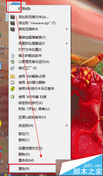 1、右擊vmware虛擬機圖標打開屬性;