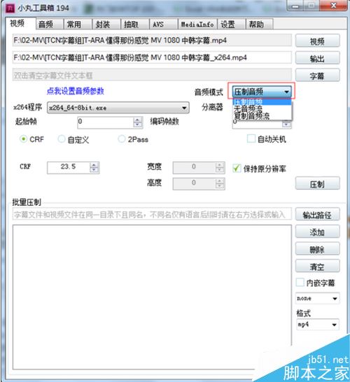 選擇音頻模式,要壓制音頻選音頻壓制,不壓制音頻選無(wú)音頻流