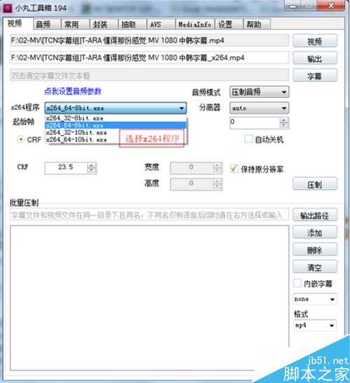 選擇x264程序,32位系統(tǒng)建議選x264_32-8bit.exe,64位系統(tǒng)建議選x264_64-8bit.exe