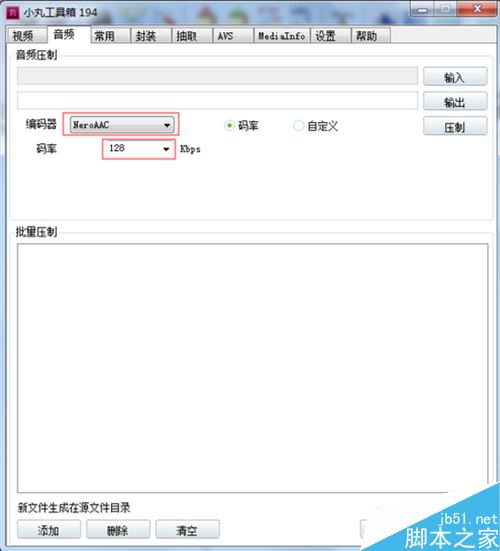 選擇音頻編碼器(建議選NeroAAC)和碼率(建議選128Kbps)