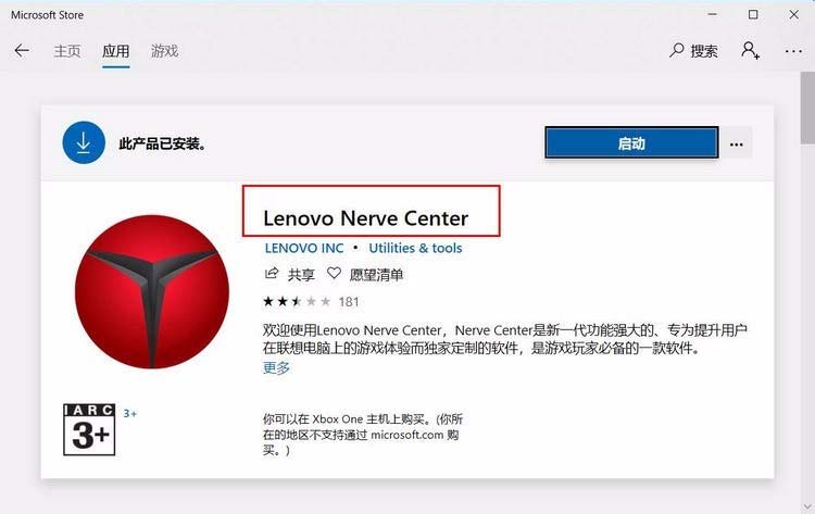 2、如有沒有的,那就需要自己去下載,win10系統的微軟應用中心搜索Lenovo nerve center,然后直接安裝就可以。